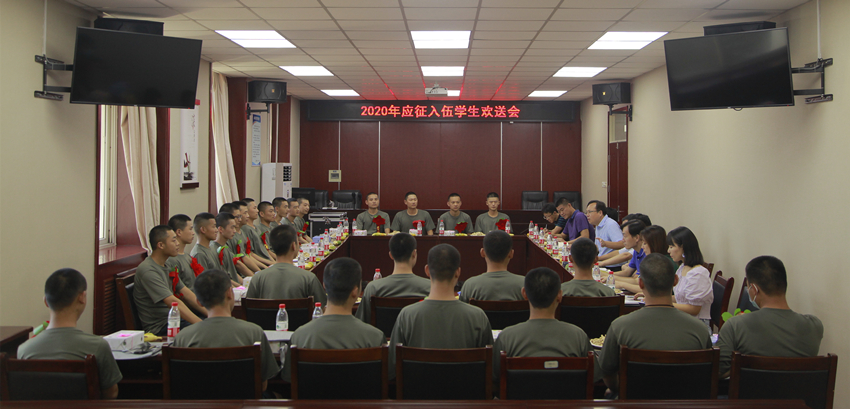 9月4日下午,学院2020年应征入伍大学生欢送会在行政楼视频会议室举行。武装部及各系部负责人、33名应征入伍大学生参加。