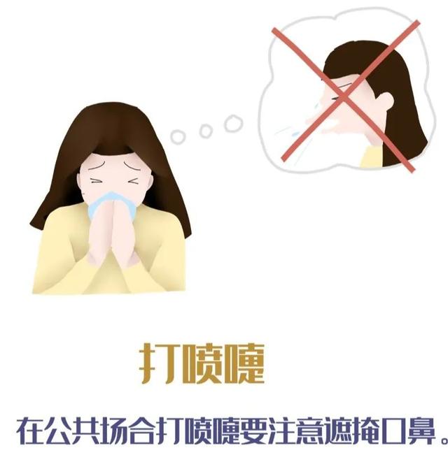 9、行为举止文明。咳嗽、打喷嚏、流鼻涕时,要用纸巾或手帕等遮挡,口鼻分泌物用纸巾包好,弃置于封闭式垃圾箱内,并按照“六步法”洗手。